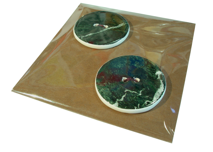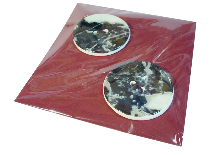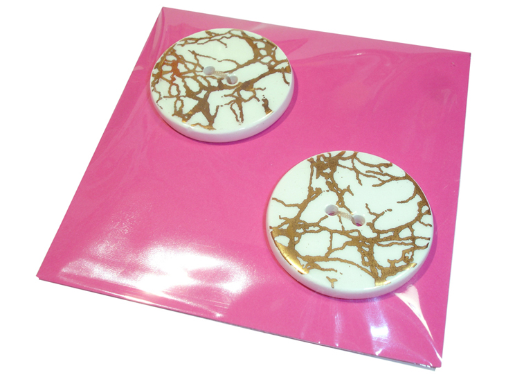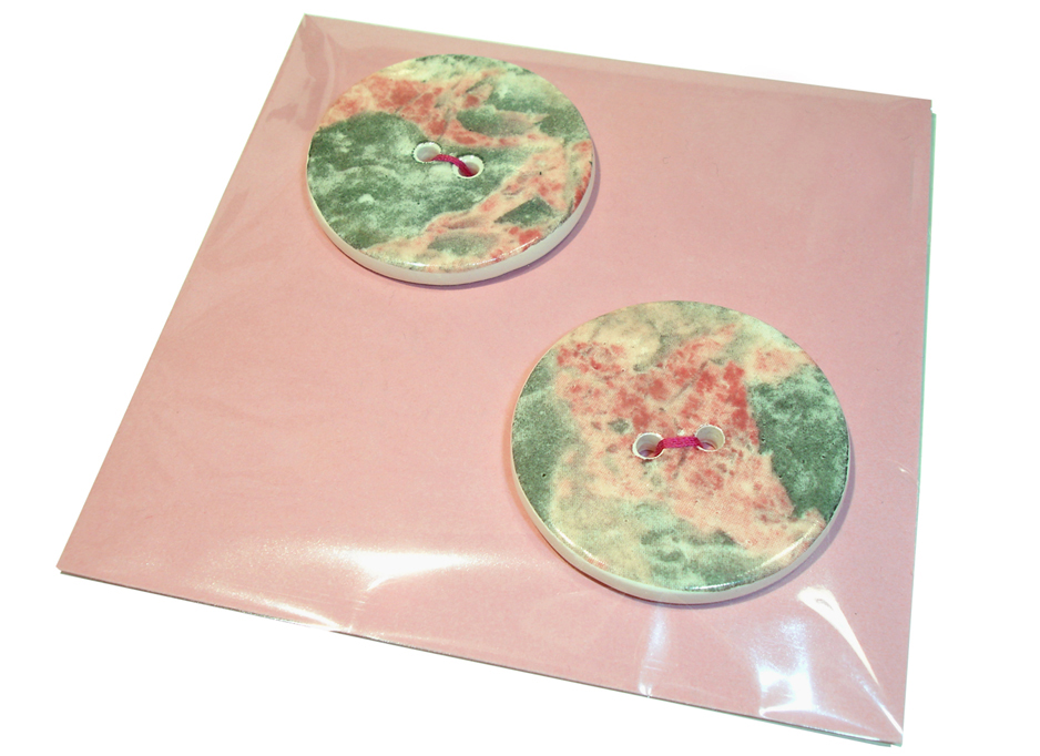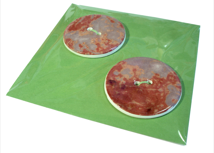 HANDMADE CERAMIC BUTTONS. Large 3.5cm. Small 3cm. (Appox 4mm thick although this can vary slightly due to their handmade nature). Sold in packs of two. * Please note the colour of packaging card may vary from picture.